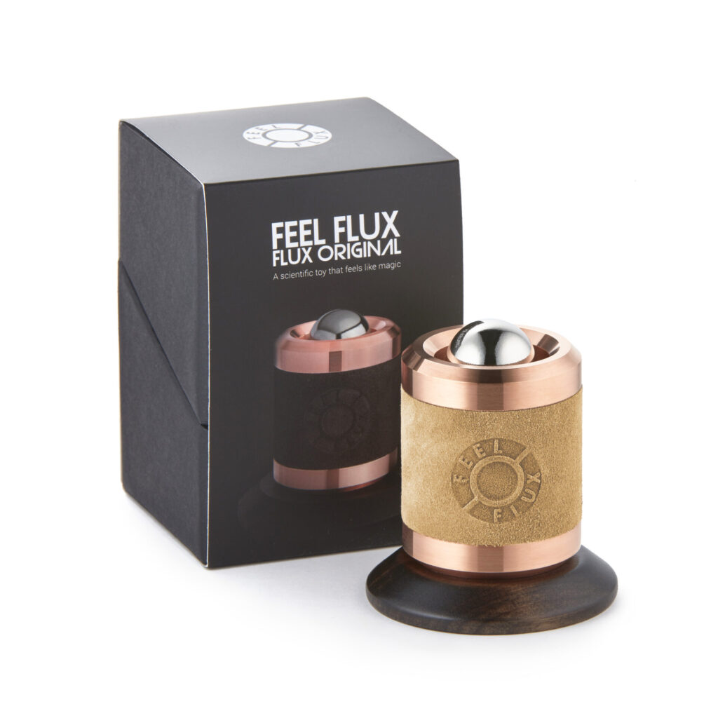 FEEL FLUX(フィールフラックス)は、19世紀に発見された電磁誘導の法則「レンツの法則」をベースに、物理を感覚体験として提示する、ハンガリーのブランドです。 初代プロダクト Flux Original(フラックスオリジナル)は、金属チューブと磁石のボールという極めてシンプルな構造でありながら、重力に逆らうようなスローモーションの落下を実現し、欧米を中心に高い評価を受け、サイエンストイの新しいカテゴリーを築き上げました。ブランドはその後も進化を続け、レンツの法則を中心に科学を感覚で味わう新しい体験を提案し続けています。