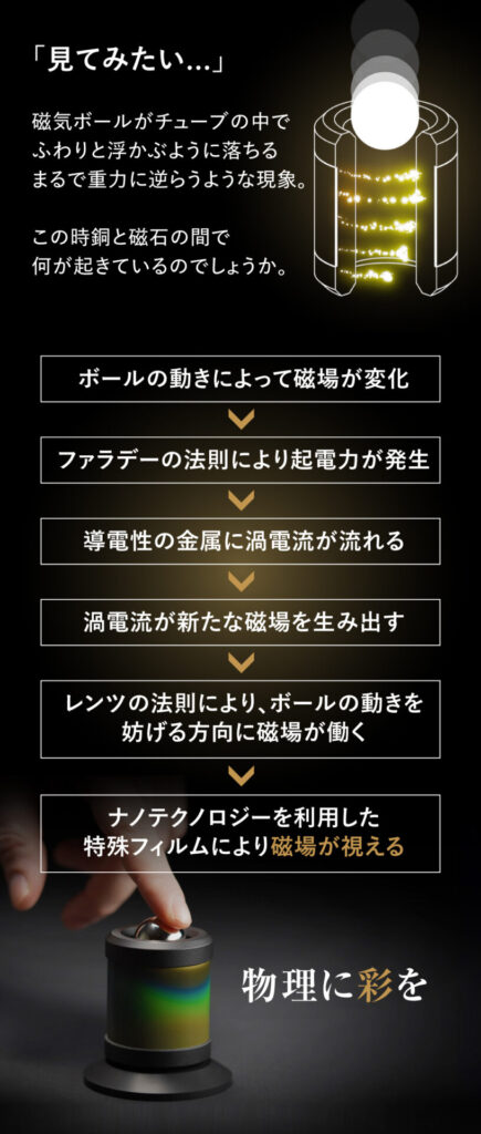 反重力のような磁石の動きと、ナノ粒子の様子を眺めることで、