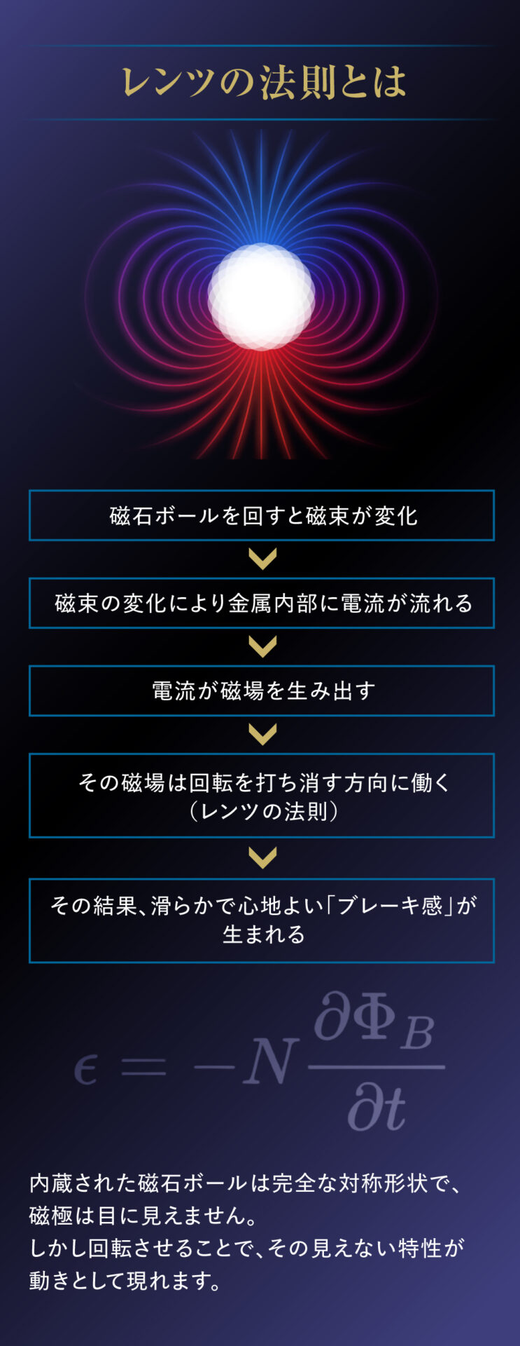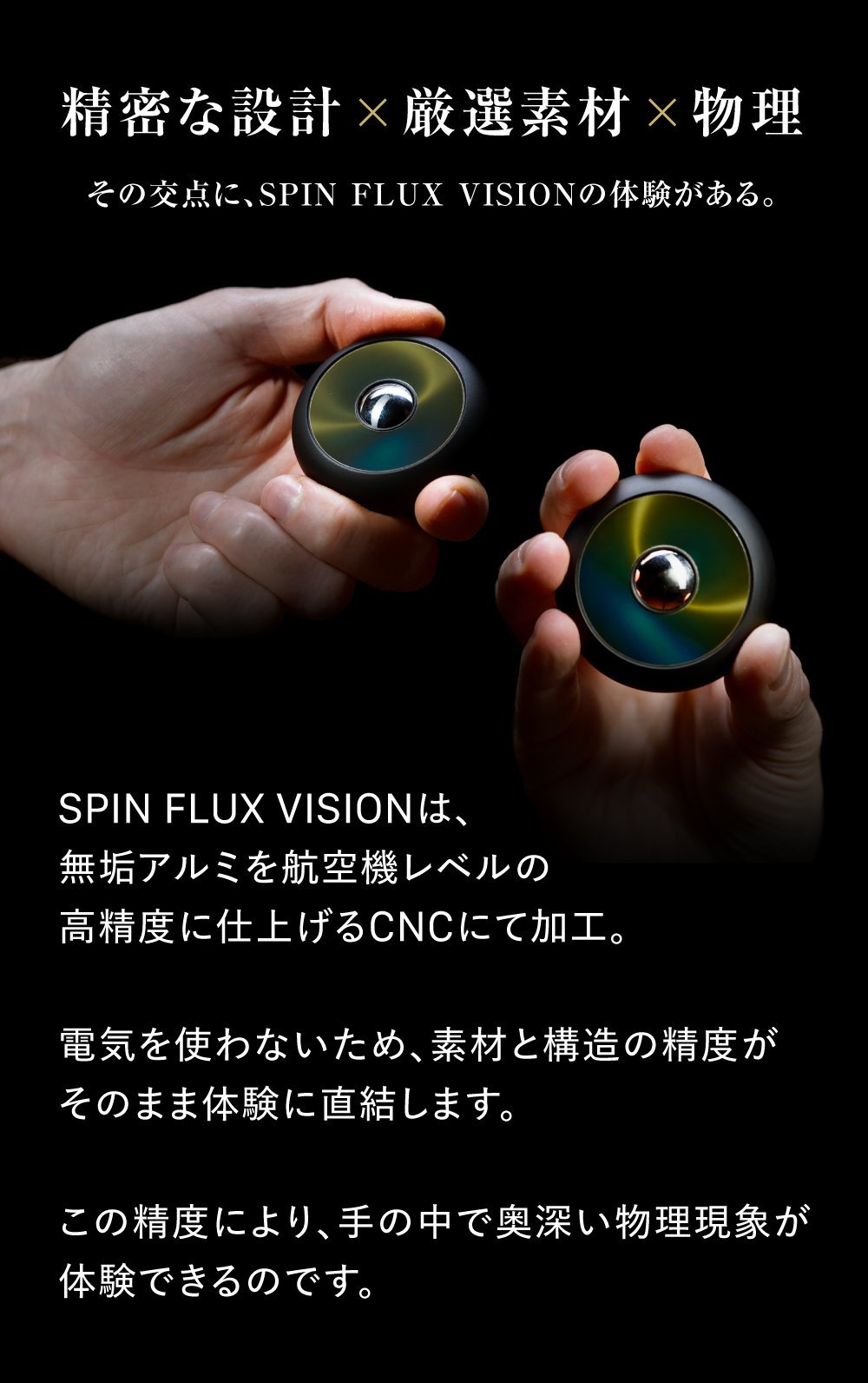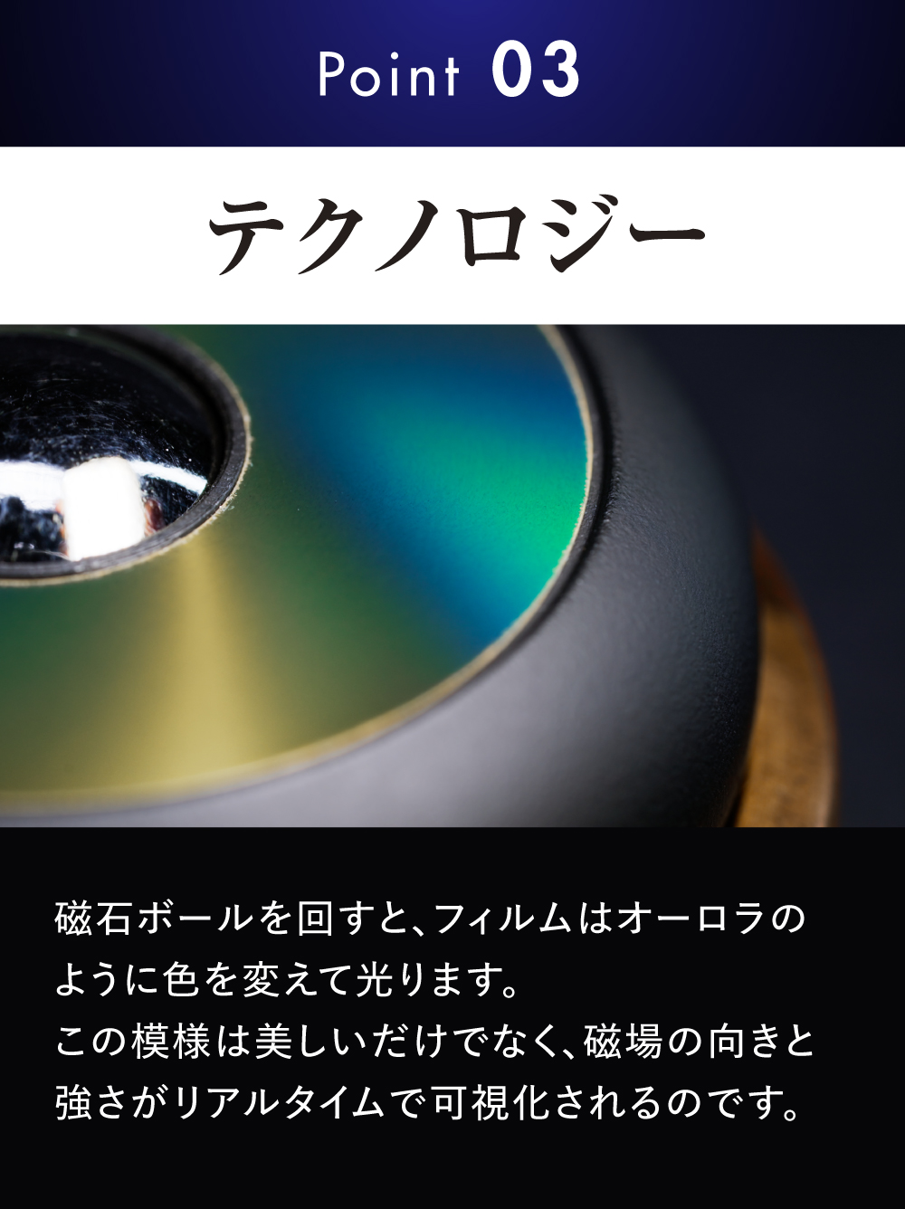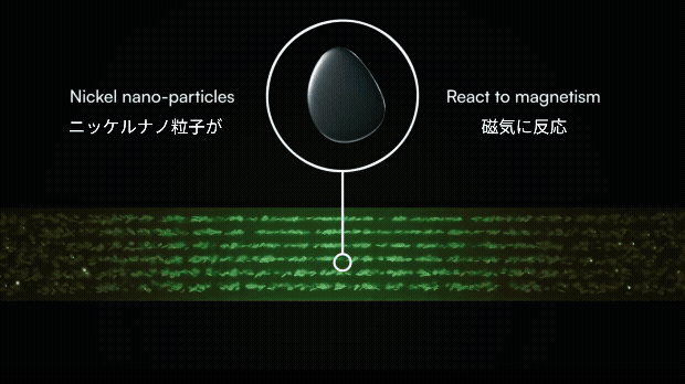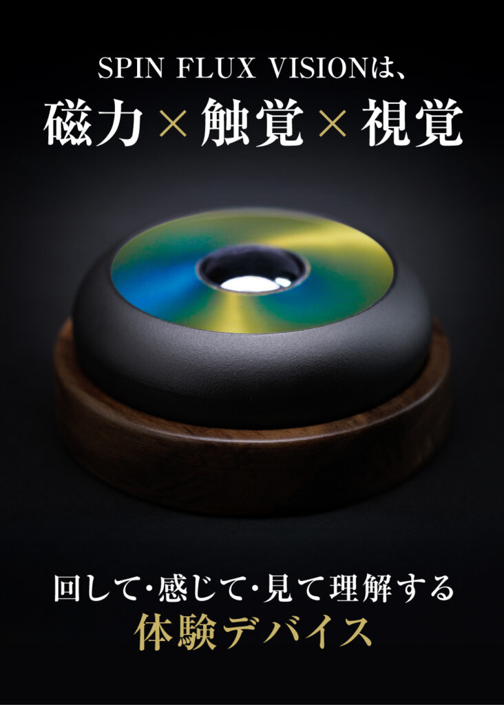 Spin Flux Visionに使用されているのは先進的ナノテクノロジーの磁気観察フィルム。フィルム内の極小の磁性粒子が含まれ内部の磁石に反応することで美しい模様が浮かび上がります。